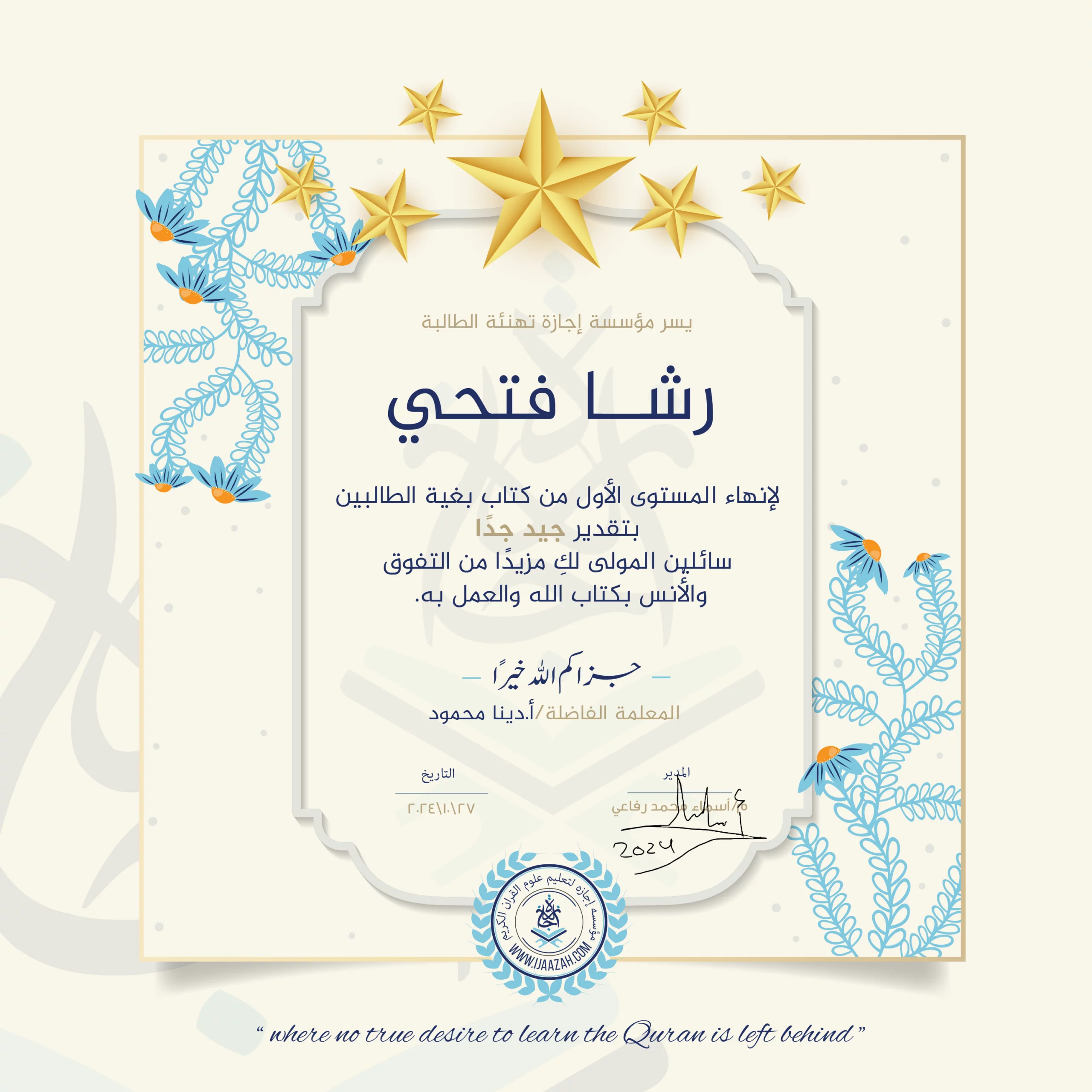 رشا فتحي لإنهاء المستوى الأول من كتاب بغية الطالبين
