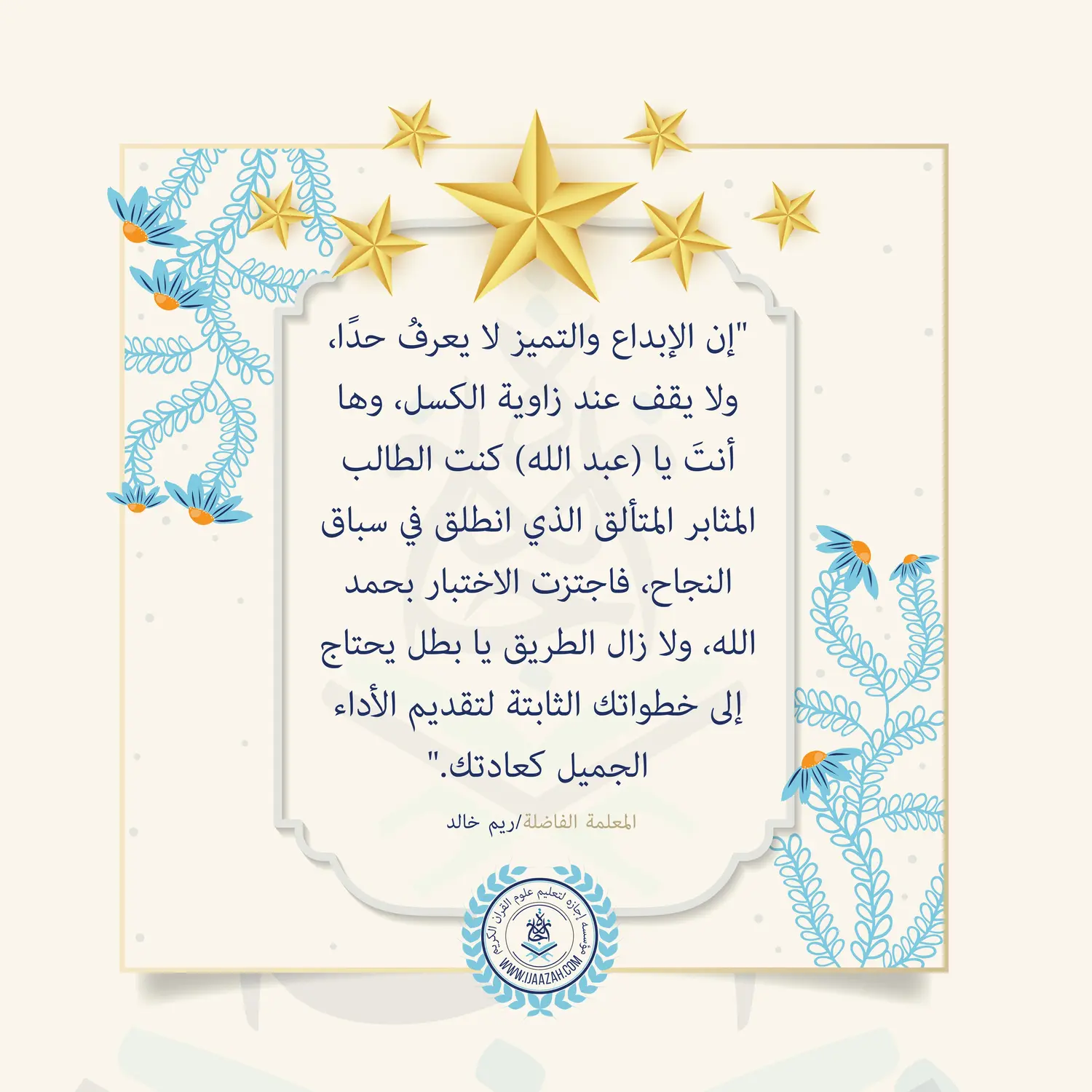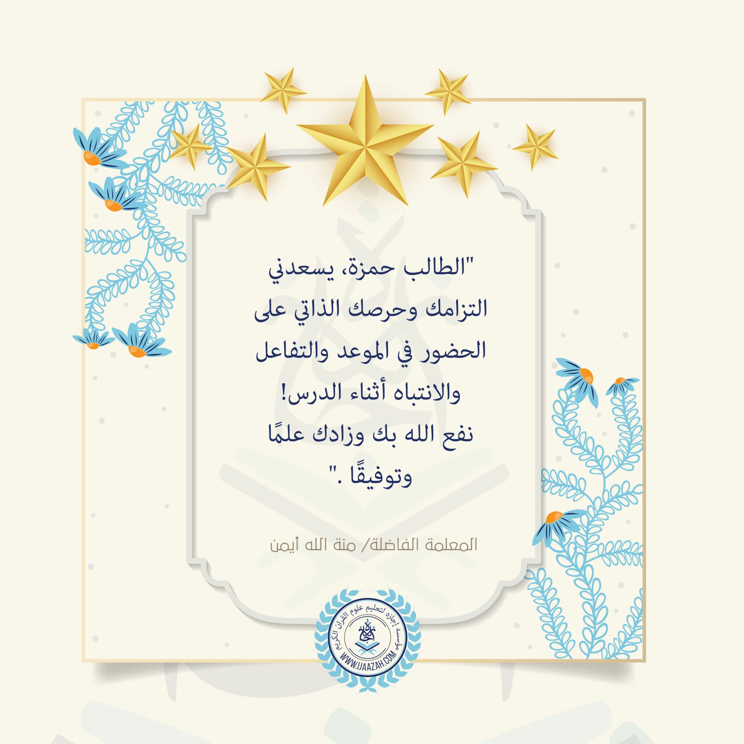 بلال شهادة لإتمامه دراسة المستوى الخامس من العربية بين يدي أولادنا