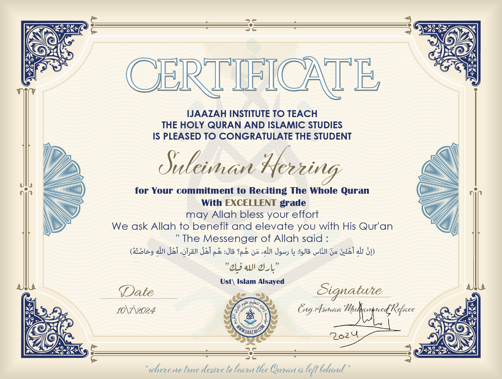 Suleiman Herring for Your commitment to Reciting the Whole Quran