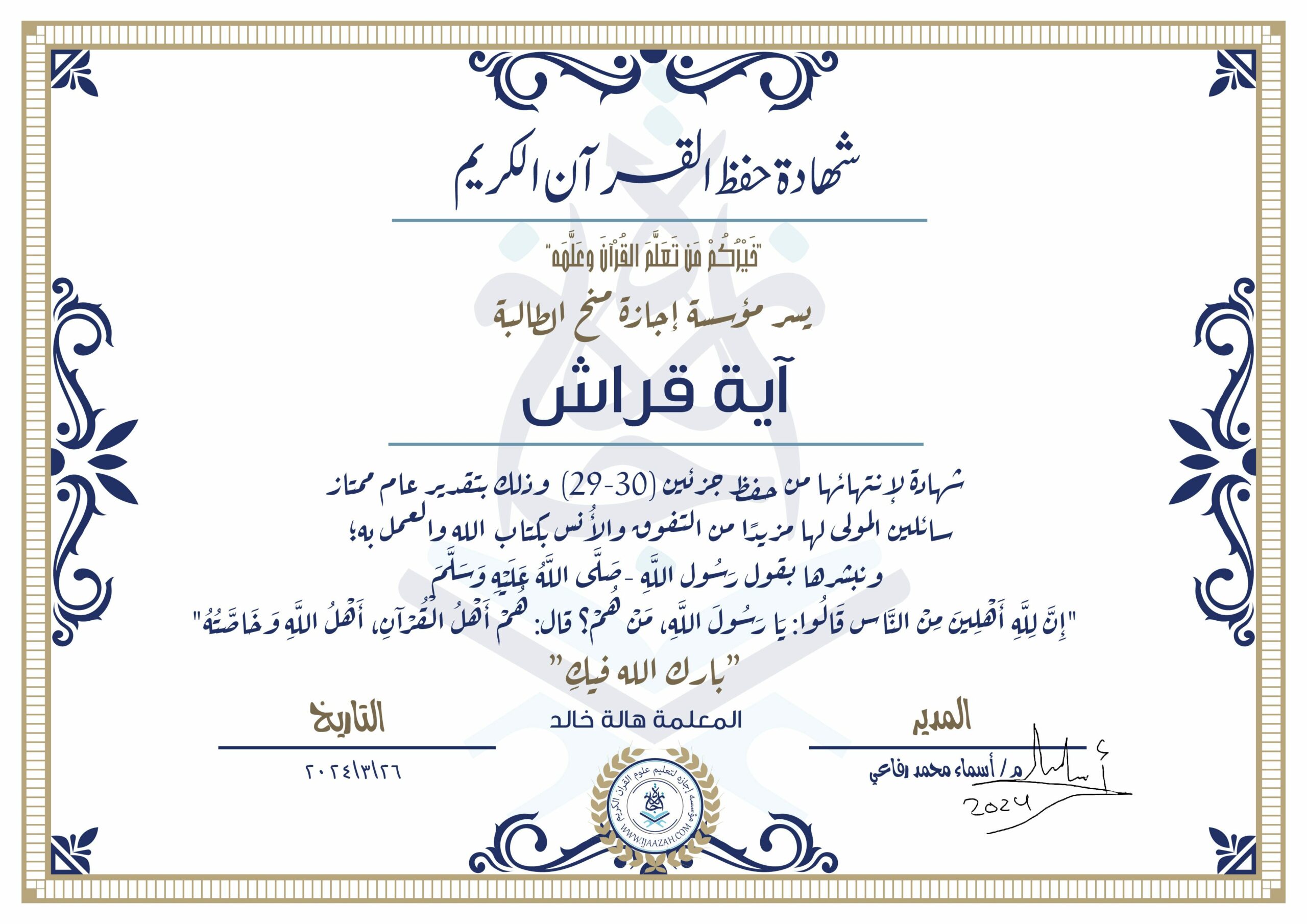 Sumaira Masood for Memorizing Surah Al-Baqarah with EXCELLENT Grade