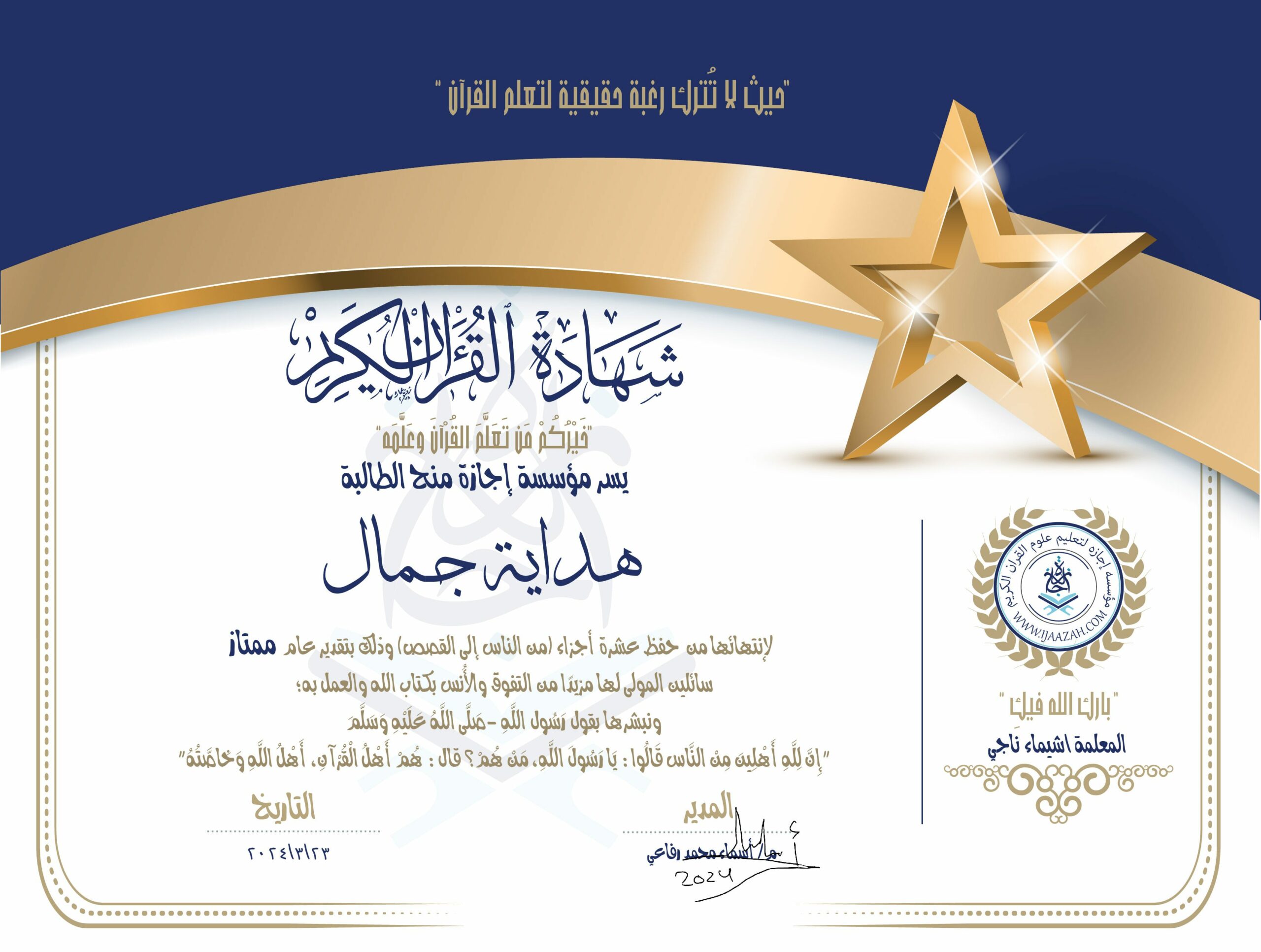 هداية جمال لحفظ عشرة أجزاء (من الناس إلى القصص)