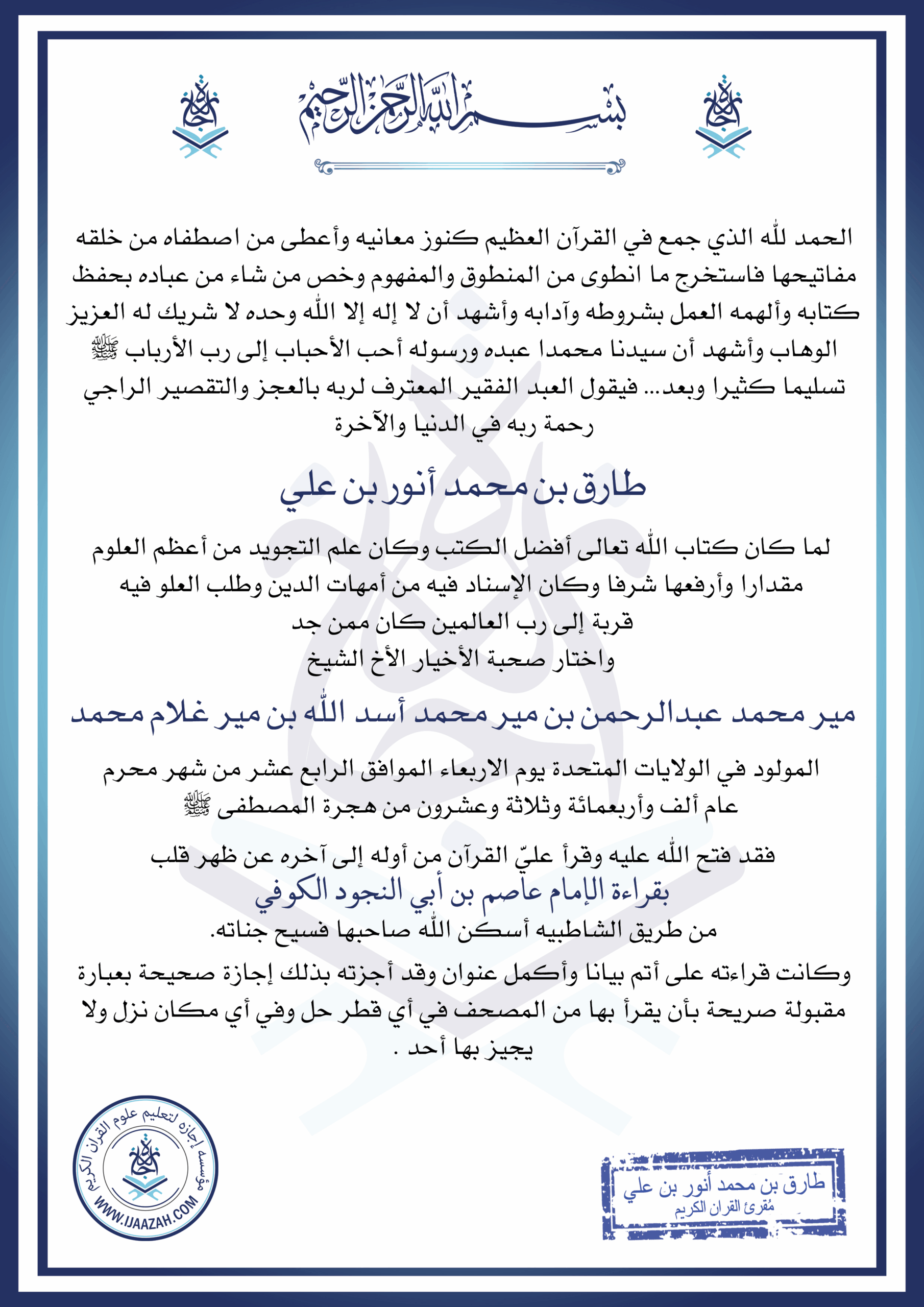 شهادة مير محمد عبدالرحمن